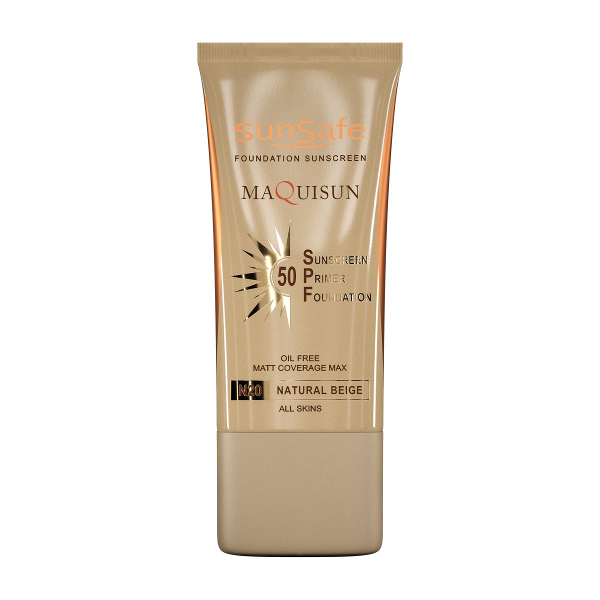 کرم ضد آفتاب کرم پودری و پرایمری بژ طبیعی فاقد چربیspf 50 سان سیف حجم 40 گرم