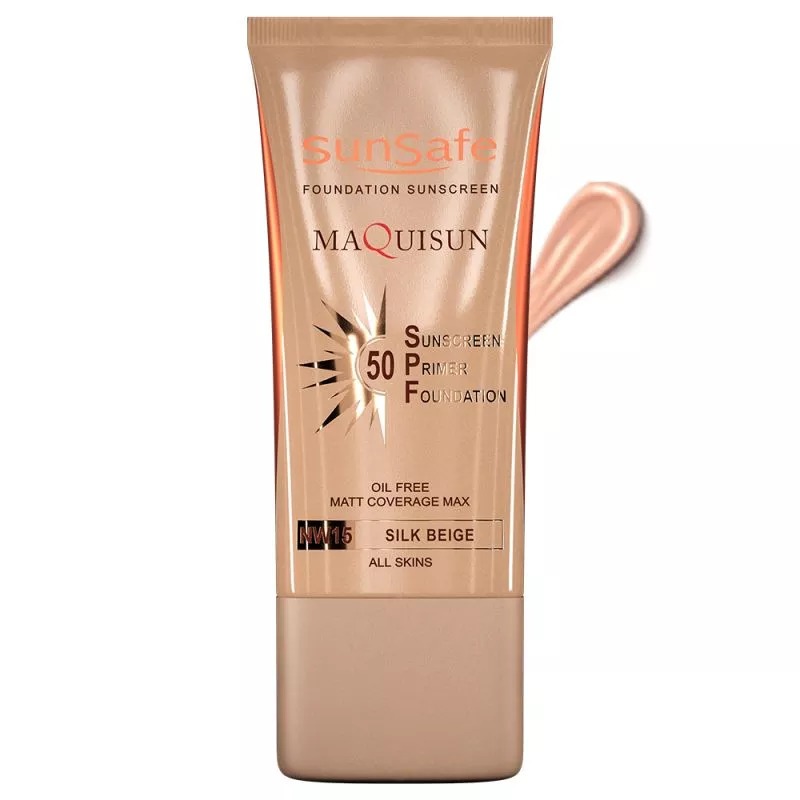 کرم ضد آفتاب کرم پودری و پرایمری بژ ابریشمی فاقد چربیspf 50 سان سیف حجم 40 گرم