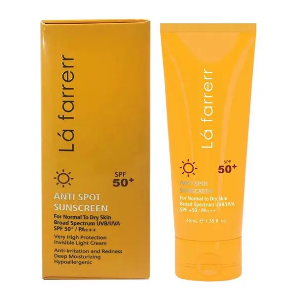کرم ضد آفتاب و ضدلک بی رنگ لافارر spf 50 پوست نرمال تا خشک 40 میلی لیتر