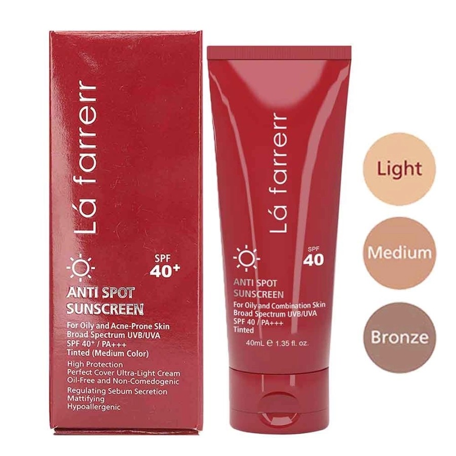 کرم ضد آفتاب و ضدلک رنگ روشن spf 40 پوست چرب لافارر 40 میلی لیتر