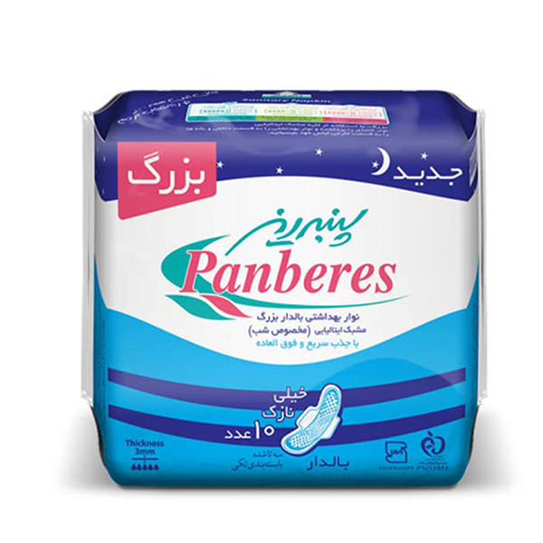نوار بهداشتی بالدار بزرگ خیلی نازک ویژه شب پنبه ریز 10 عدد