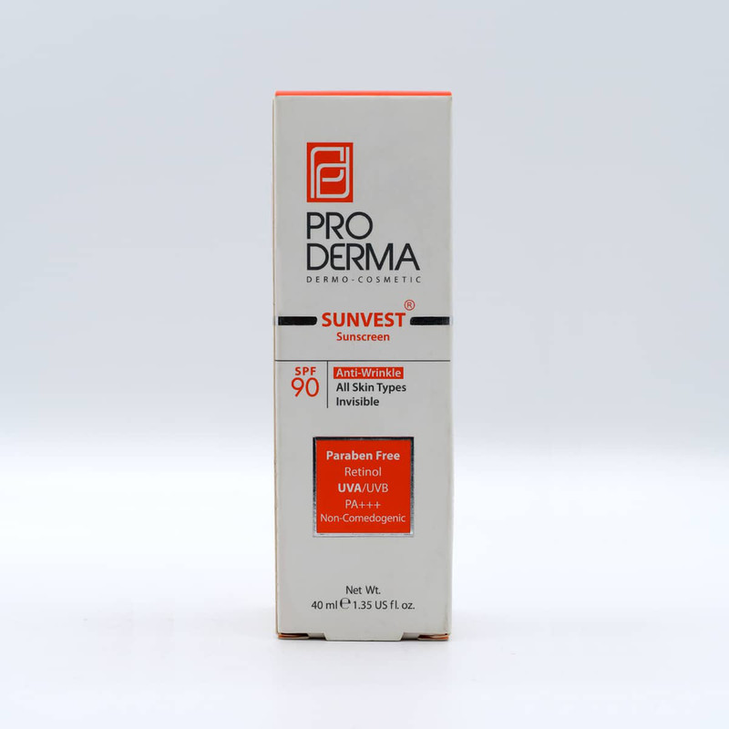 کرم ضد آفتاب SPF 90 ضدچروک رنگی انواع پوست بژ روشن پرودرما 40 میلی لیتر